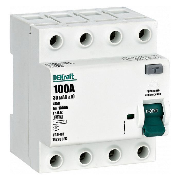 УЗО DEKraft УЗО-03 4P 100А 6 кА, 30 мА (AC), 14238DEK - это надежное устройство защиты от утечки тока и короткого замыкания. С данным устройством вы можете быть уверены в безопасности электрических цепей вашего дома или офиса. УЗО имеет четыре полюса, номинальный ток 100А и уровень короткого замыкания 6 кА. Дополнительно, устройство оснащено дифференциальной защитой на уровне 30 мА переменного тока. Продукт отличается высоким качеством и долгим сроком службы, что делает его отличным выбором для обеспечения безопасности вашей электрической сети.